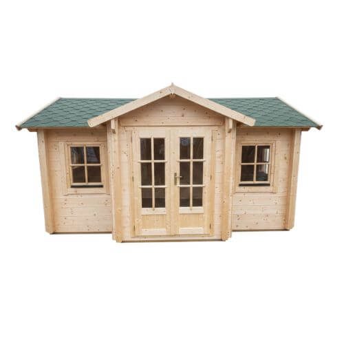 The Bella log cabin is relatively new to the Logspan product bank but none the less has established itself as one of the most popular 30mm cabins available. The space provided in this garden cabin along with the front porch section really makes this cabin an enticing proposition to most garden building scenarios. It is also a very bright log cabin due to the double doors having three quarters glazing at the front and the two large single windows either side letting plenty of light flood in. The Bella log cabin is available in a wide range of sizes and is also available with 45mm walls. Like all our cabins, if there isn’t a size that fits your situation, contact us and we will do a custom build size for you at no extra cost.