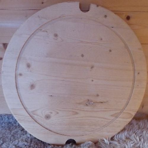 Covers the barbecue grill and is 58cm in diameter. Laminated timber construction with a routered inner ring.