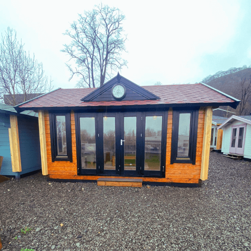 Looking for a the focal point of your garden for a garden office or a quiet retreat room but want something a bit special to look at? Look no further than the Clockhouse. Not only is this sizeable with loads of space inside but it is packed with features that make it more than just a big rectangle. And extended high ceiling, full height glazed double doors and an additional two floor to ceiling windows make this cabin into a truly eye catching cabin.