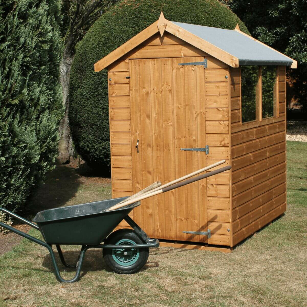 This shed has high quality features like a ledged and braced door, with lock and key, zinc hinges and handles which are all included as standard. The windows are 24" x 24" (quantity dependant on size of building), and are glazed with horticultural glass.