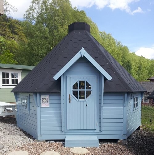 The Finman 17 Square Metre Sleeper cabin. Ideal for camping and glamping - provides the platform to create a luxury honeymoon suite or a cosy weekend retreat. The walls are 45mm (nearly 2”) thick and all windows and doors have full double glazing. Like all of our cabins, this BBQ Hut is manufactured using sustainably grown slow grown Scandinavian spruce.