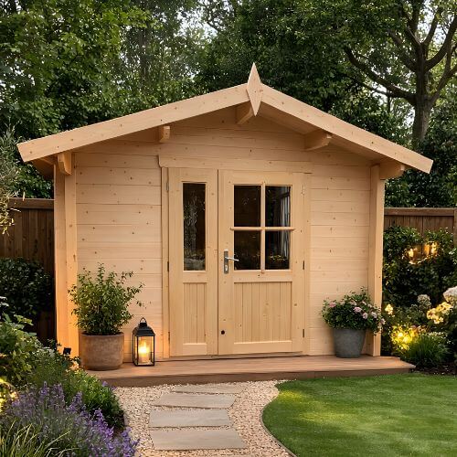 The Kempton features 30mm interlocking tongue-and-groove wall logs that provide strength, stability, and natural insulation. This high-quality timber construction ensures the cabin is durable and suitable for year-round use in your garden.