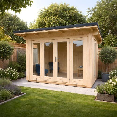 Designed for modern lifestyles, the Lomond cabin is ideal as a garden office, guest accommodation, creative studio, or home gym. Its robust insulated construction makes it one of the most suitable garden buildings for homeowners looking to create a fully functional extension of their home within the garden.