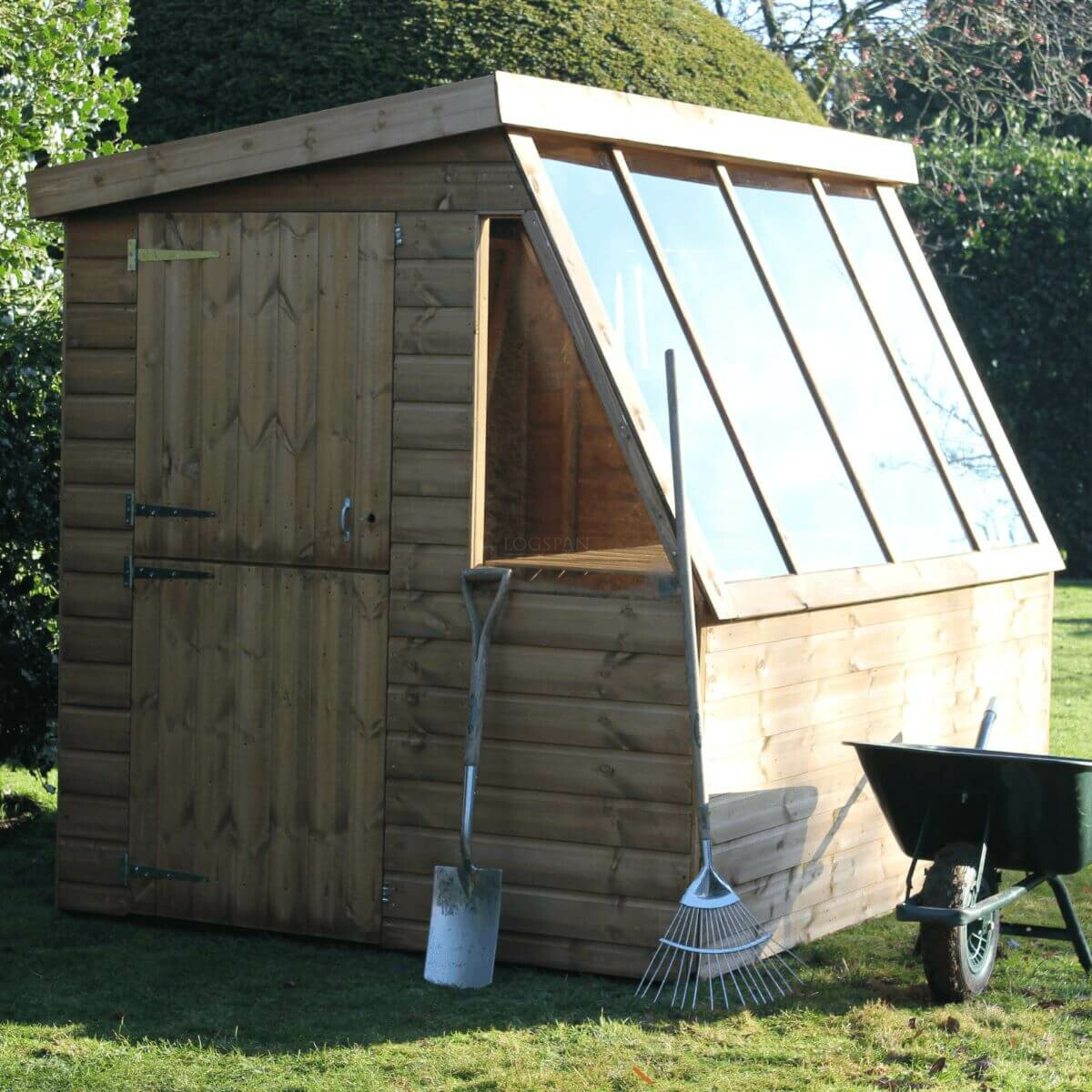 The Potting Shed is a traditional garden building which offers practicality and beauty. This building is any gardeners dream because of its ideal and spacious design. It also comes with robust slatted staging under the window which can be used for urban farming or cultivating your plants.