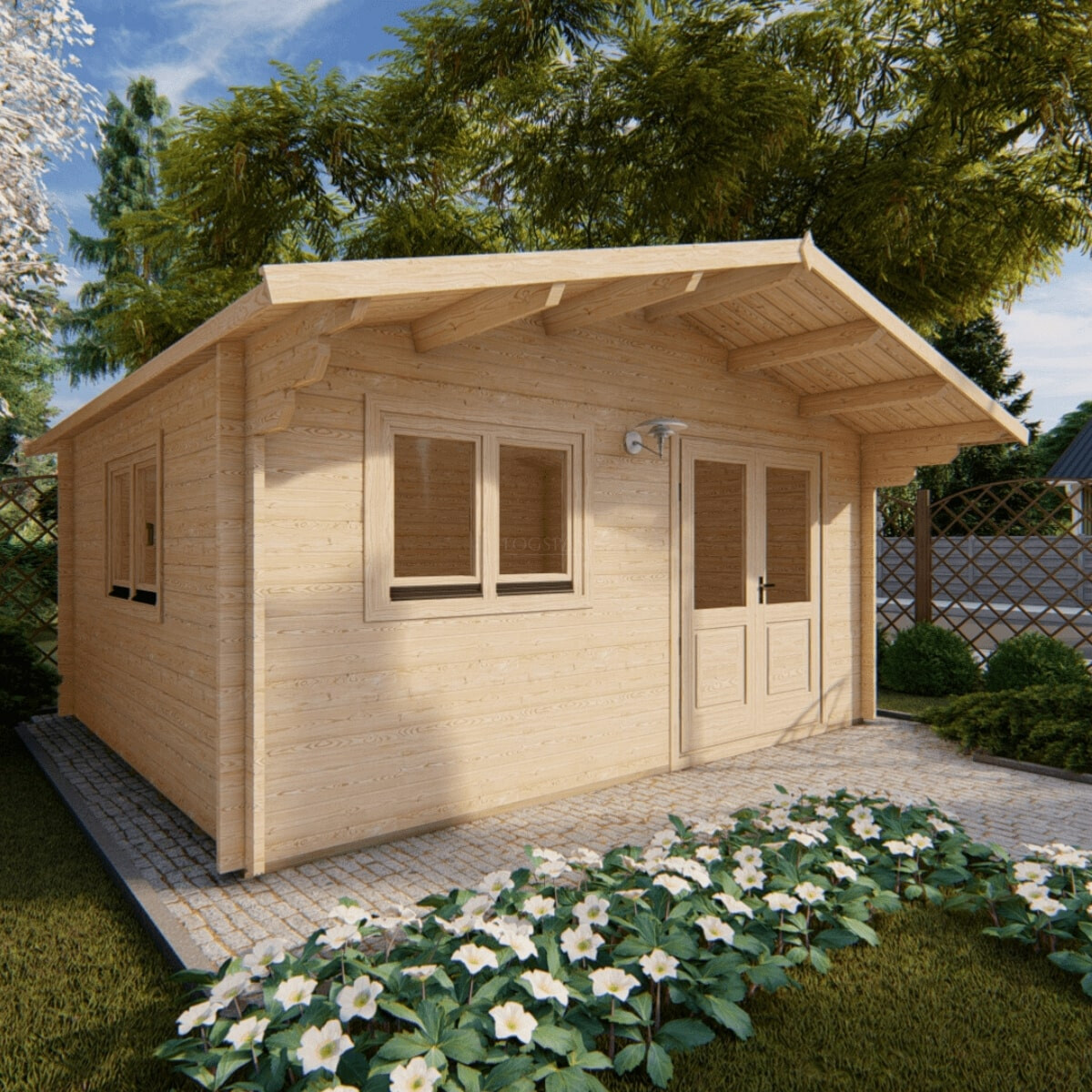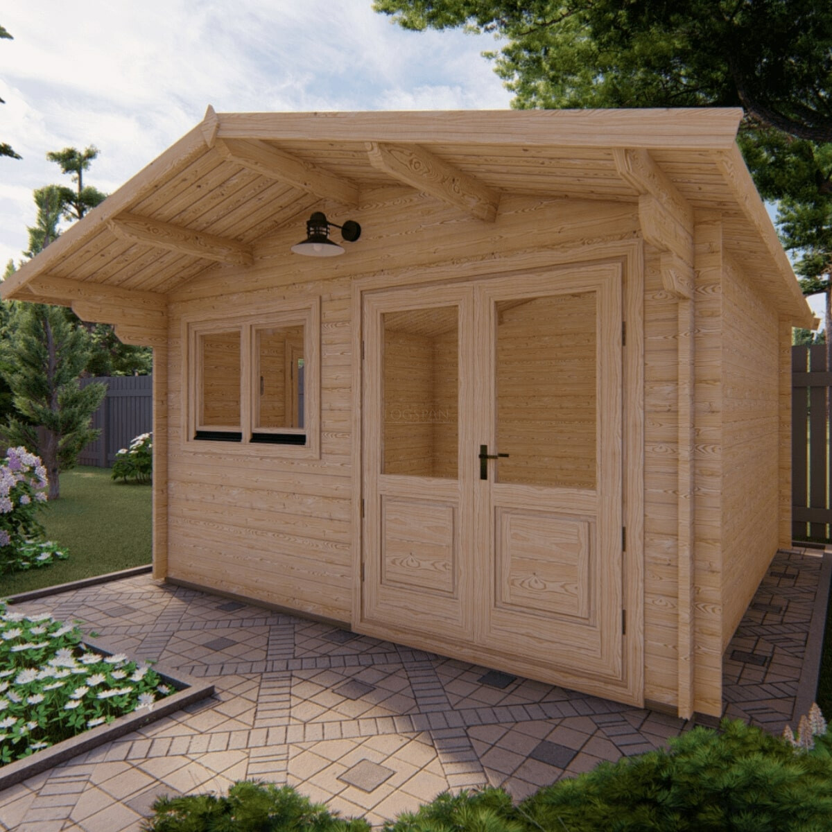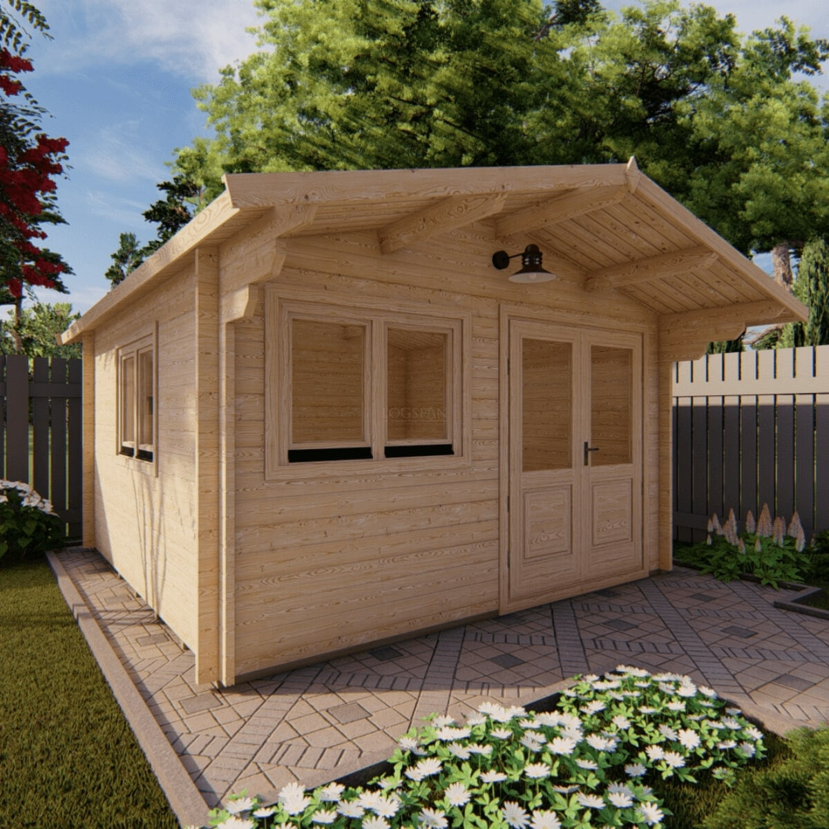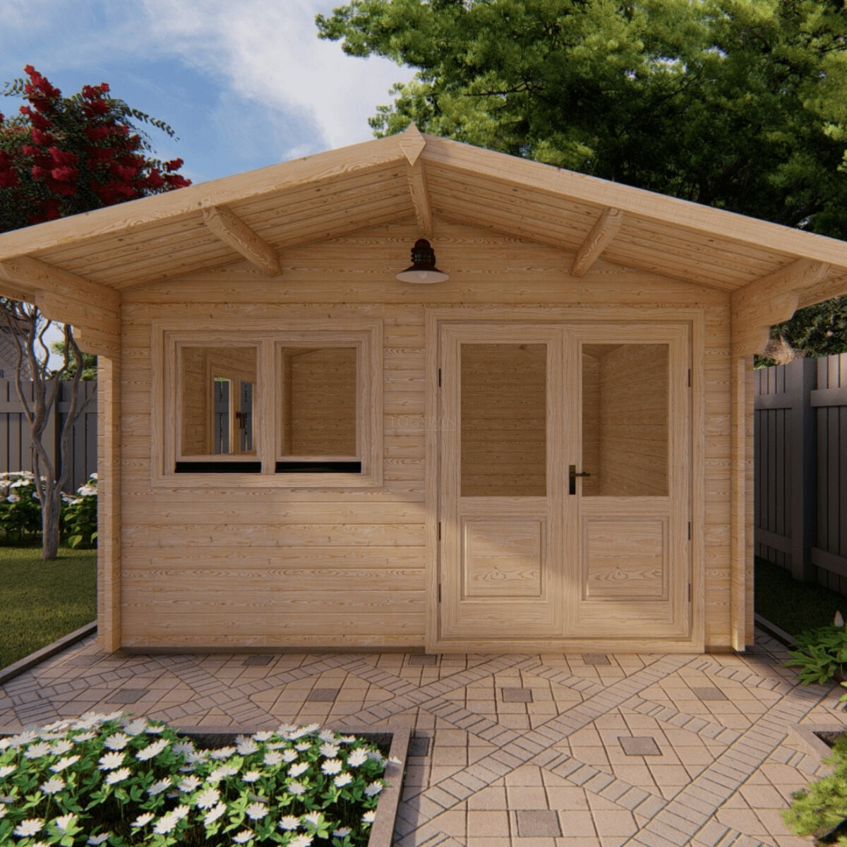 Reinvented, revamped and refined but it has remained as a dependable, affordable and sought after Log Cabin. Garden office, kids playroom or extra accommodation; these are just a few of the uses that this log cabin covers. Not wanting to get carried away with our attractive descriptions, here are some facts. The Wallace log cabin is double glazed. On the front, you have a set of double doors along with a double paned, tilt & turn window. On the side (you choose which side) you have an additional single, tilt & turn window as standard.